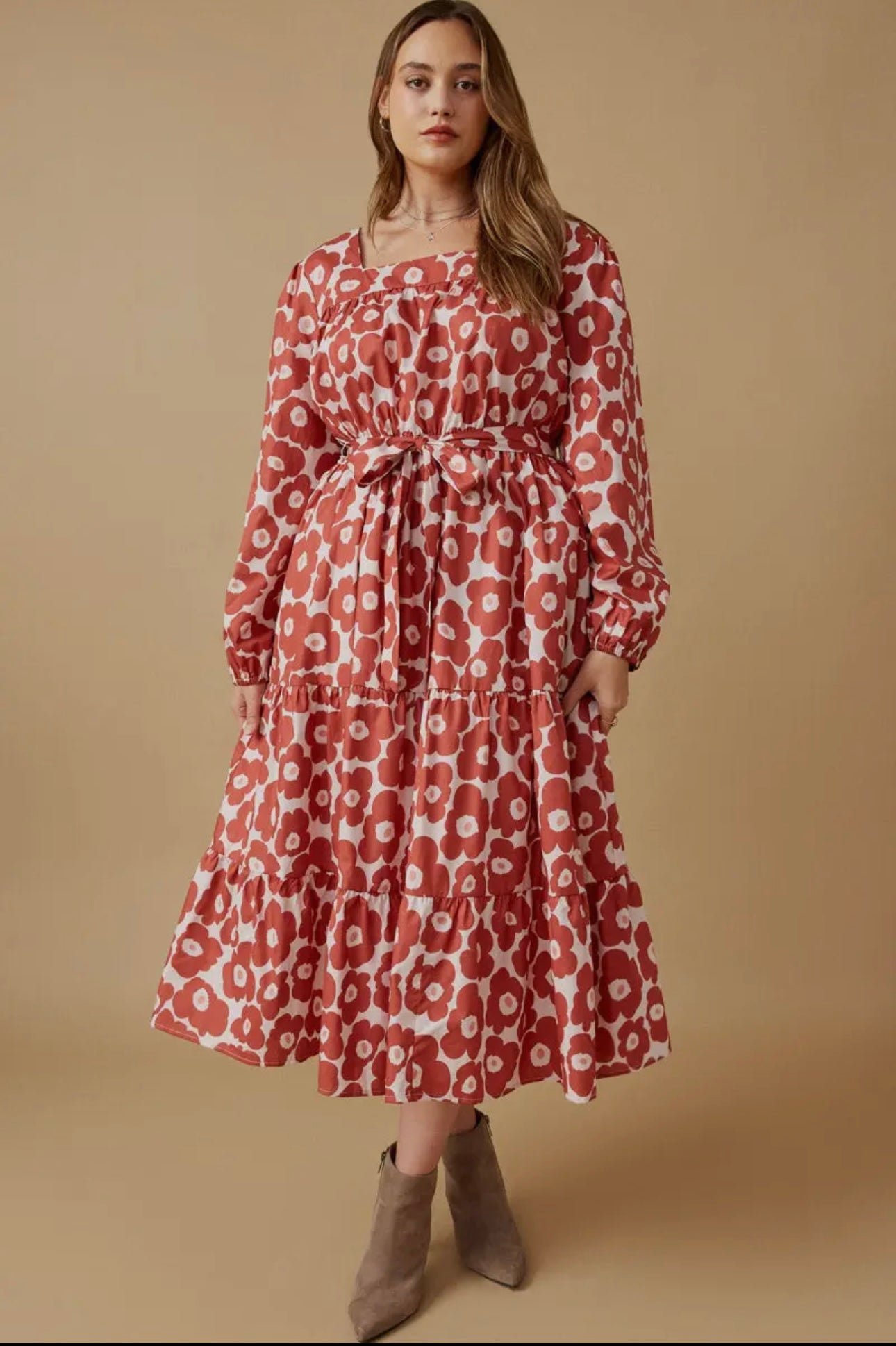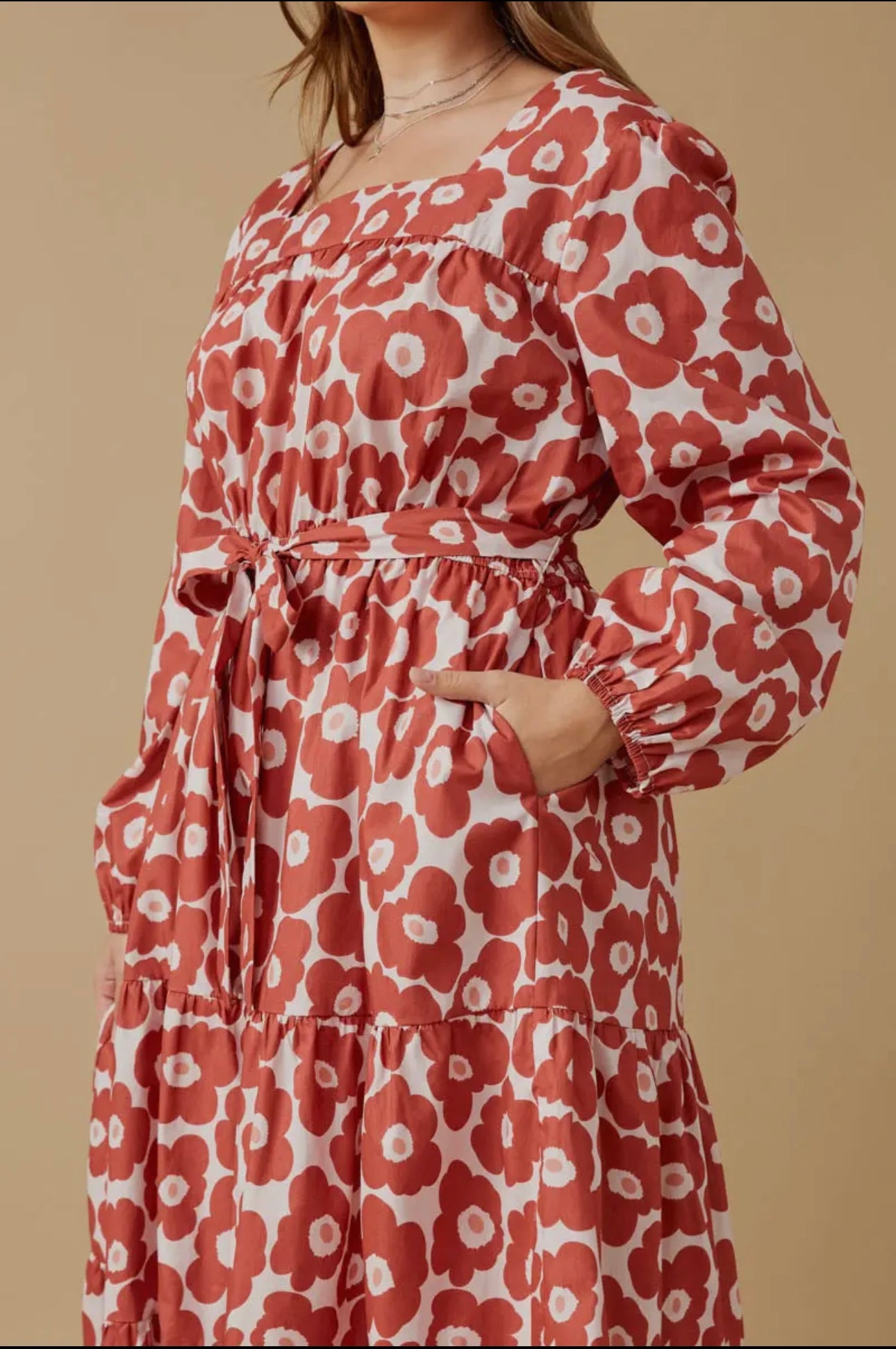 Floral Woven Fabric | Square Cut Neckline | Belted Waistline